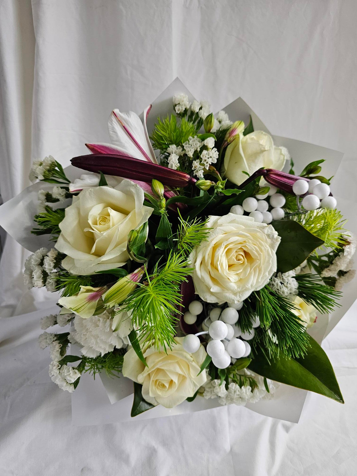 White Christmas bouquet with Christmas Lilies