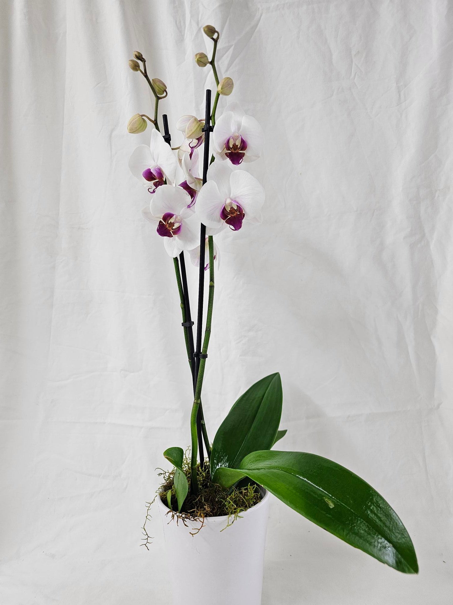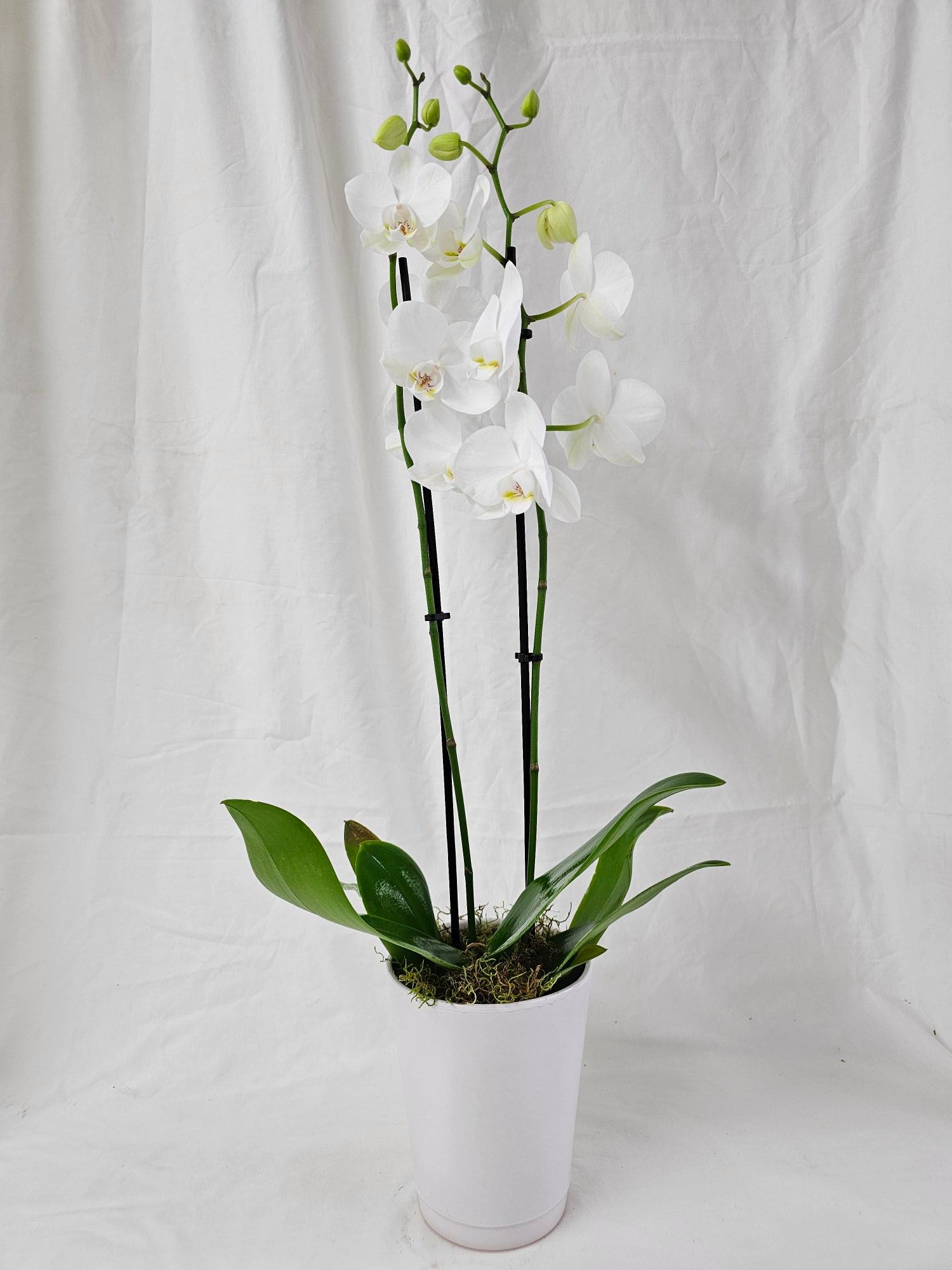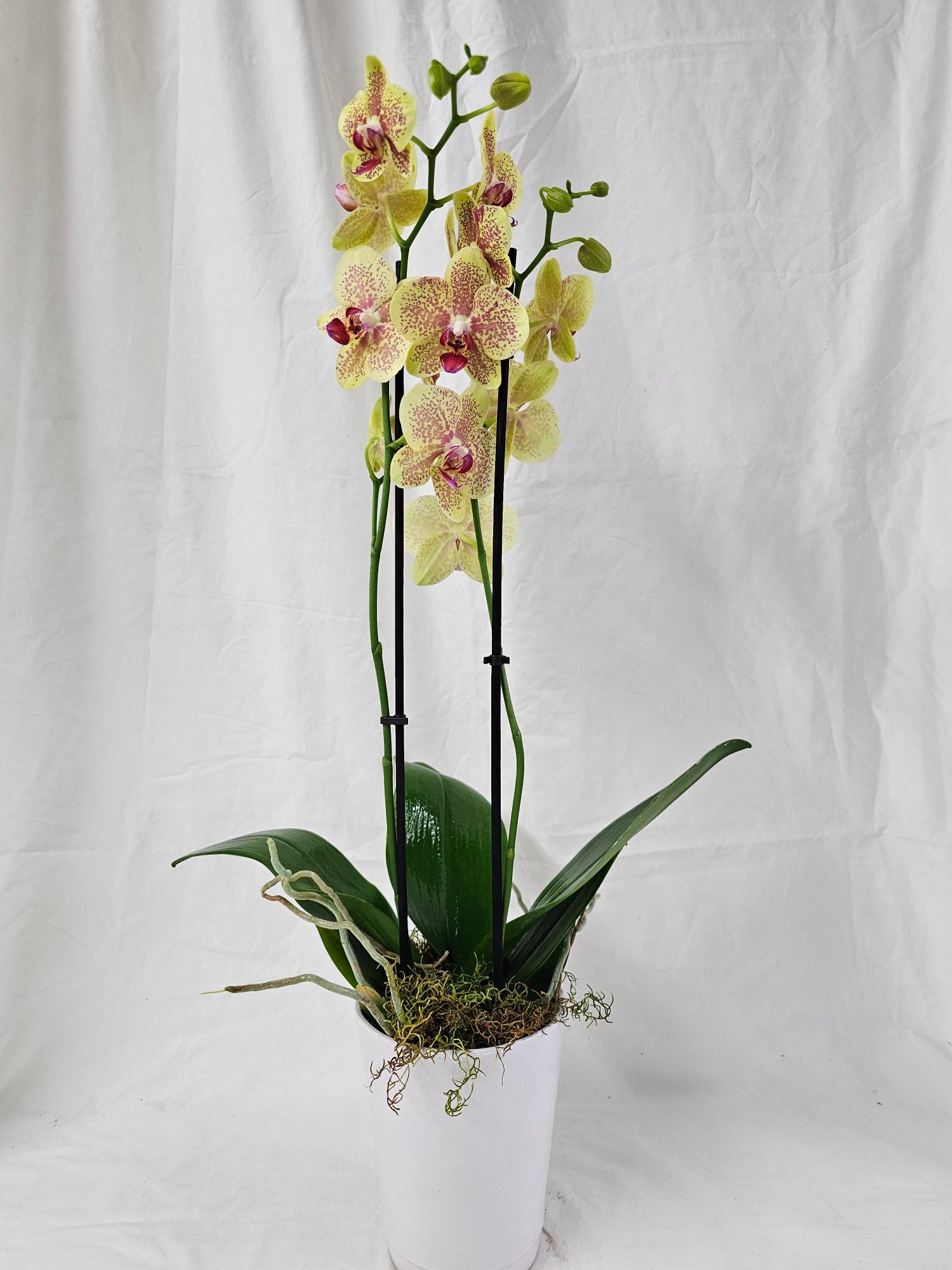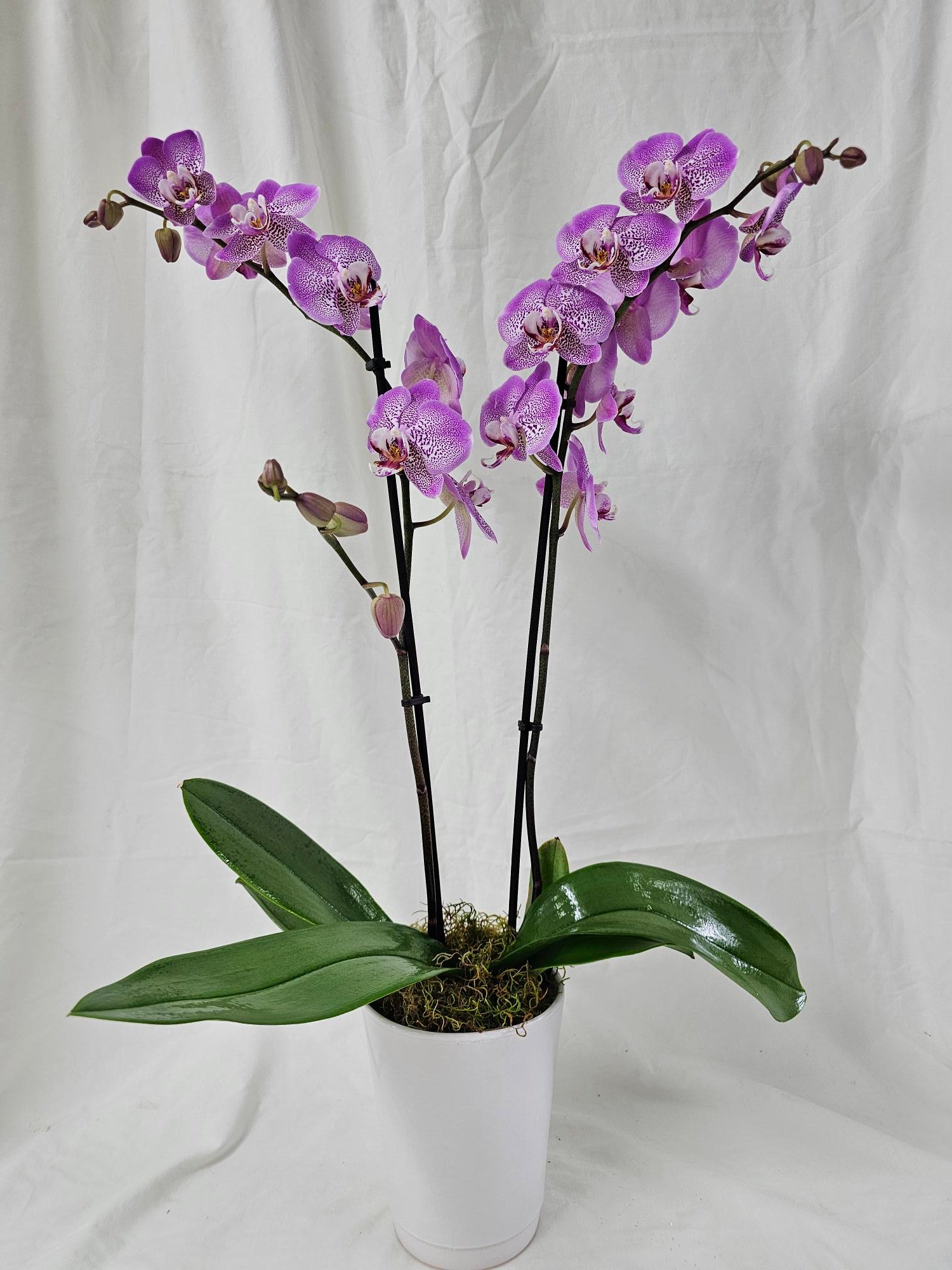 Orchid plants in a pot. Florist’s choice of flowers– with a lot of buds and side shoots, to give a display for months ahead. Full care instructions attached. Please give us a call if you would like to discuss colours we have in stock as ones shown in photos aren't always available.